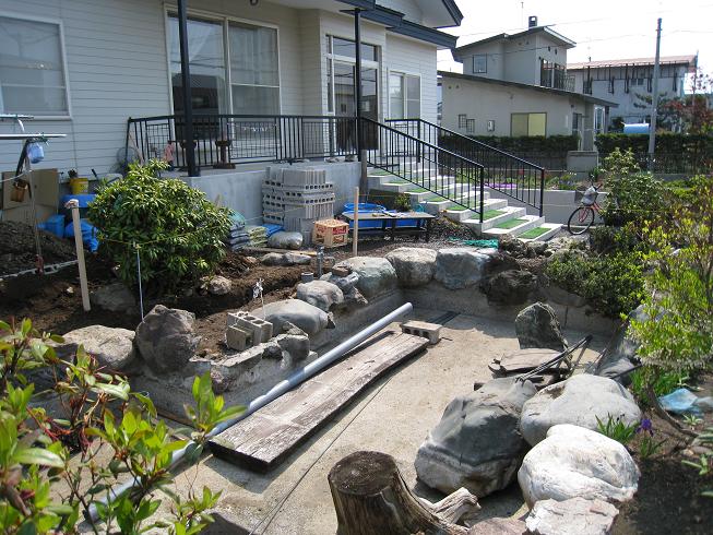 庭池の越冬の準備完了 (1)