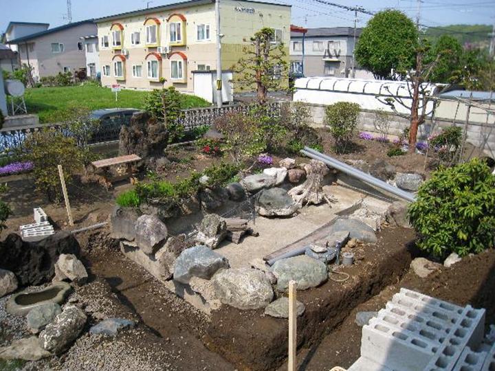 庭池の越冬の準備完了 (1)
