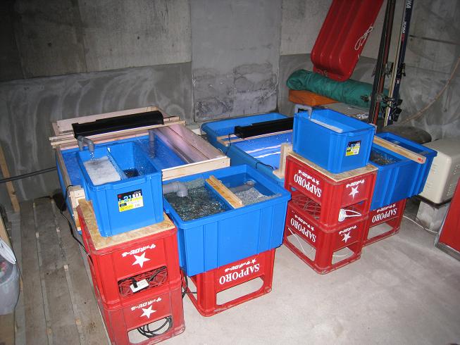 私の家のコンクリート池の錦鯉たちも当初は、自然のまま越冬させていたのですが、我が家の池にミンクに襲撃されてそれ以降室内飼育に切り替えました^^;